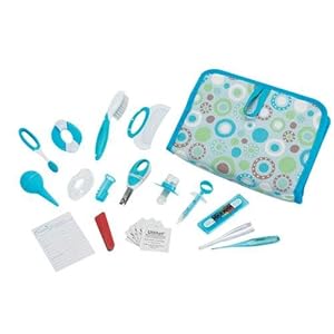 The Summer Infant Dr. Mom Complete Nursery Care Kit includes these must have baby items as well as a storage case to make travel easier and more convenient and to keep items together and protected at all times. This includes nasal aspirator, digital thermometer, strip with case, pacifier medicine dispenser. It includes medicine syringe, comb, brush, nail clippers, 6 emery boards. This includes teether, gum massager, finger toothbrush with case. It includes 5 alcohol swabs, emergency information card and stylish storage case.